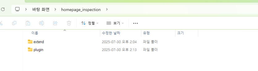 1. 업로드된 압축 파일(homepage_inspection.zip)을 다운로드 받아 압축 해제 시 다음과 같은 구조를 볼 수 있습니다.